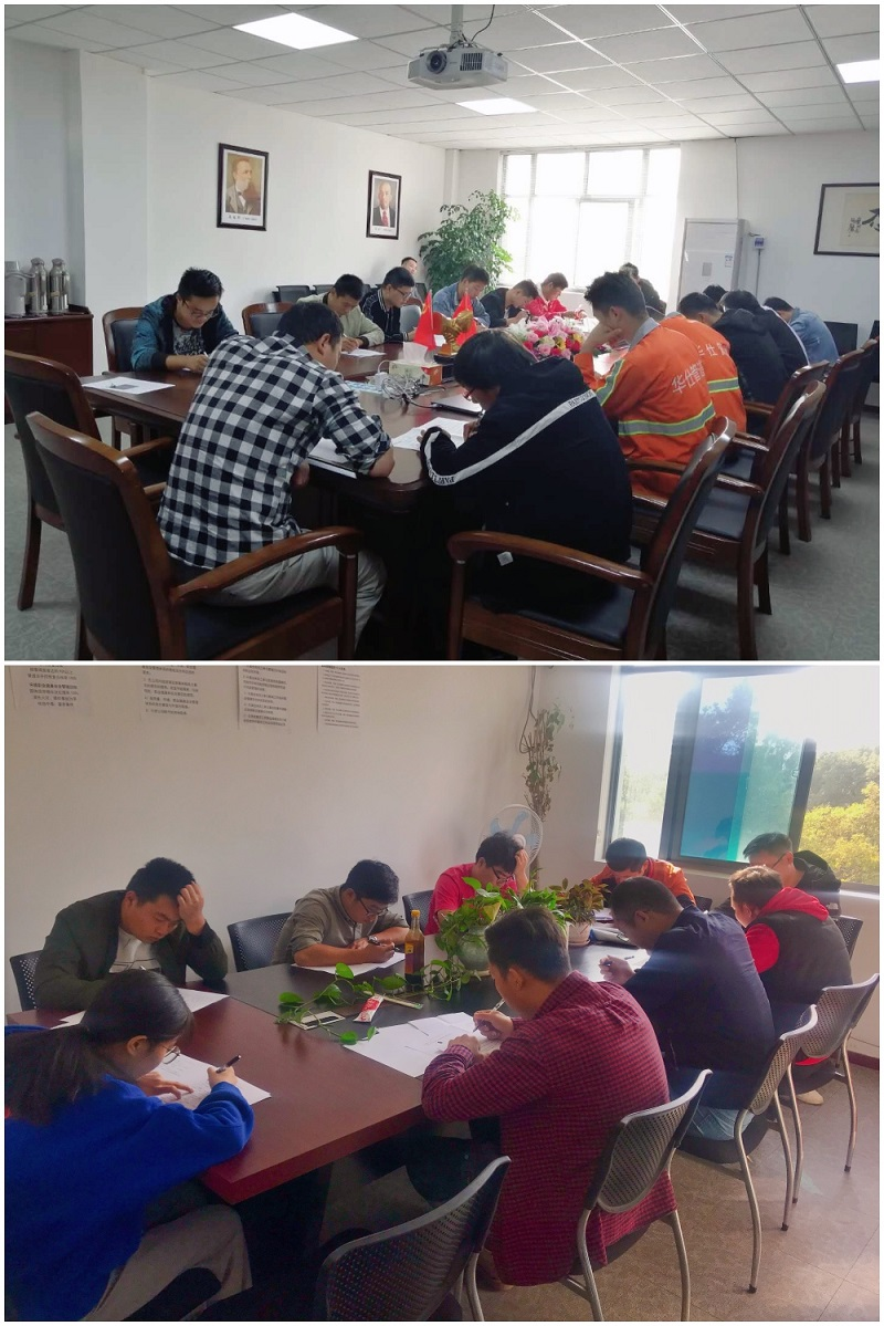 杭州考场 考试结束后,监考人员现场批改试卷,大家针对自己的错误和不足回去后进行改正和进一步的学习。华仕管道一直以来都非常重视对人才的引进和培养,为了更好地丰富人员专业知识的储备,为了不负业主所托,为了在环境保护事业中贡献更多的力量。 愿我们和公司一起越来越好! 趁着大家难得从施工现场回到公司集体学习的机会,总经理杜元亮对大家在施工作业中的规范施工和安全施工问题,做了再一次强调,并就各种注意事项再做明确。